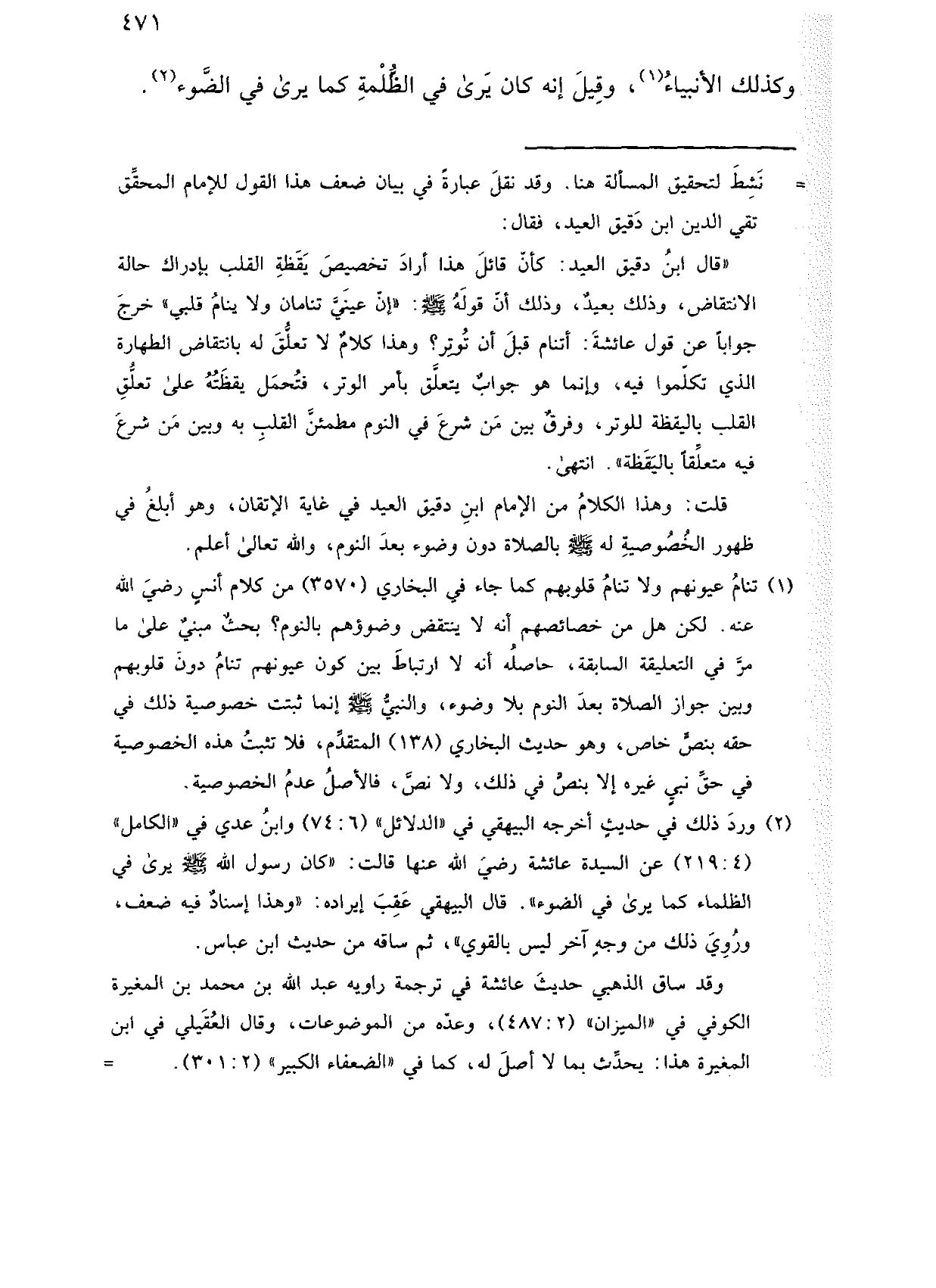 وكذلك الأنبياء، وقيل إنه كان يرى في الظلمة كما يرى في الضوء.