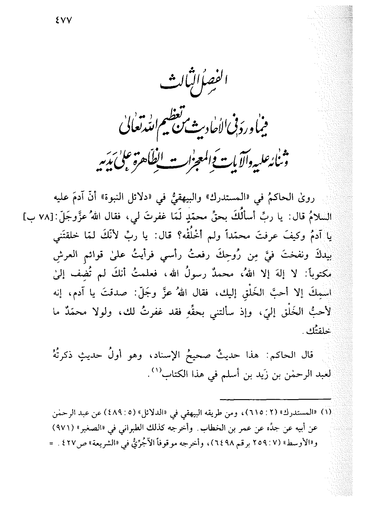 قال الحاكم: هذا حديث صحيح الإسناد: وهو أول حديث ذكرته لعبد الرحمن بن زيد بن أسلم في هذا الكتاب.