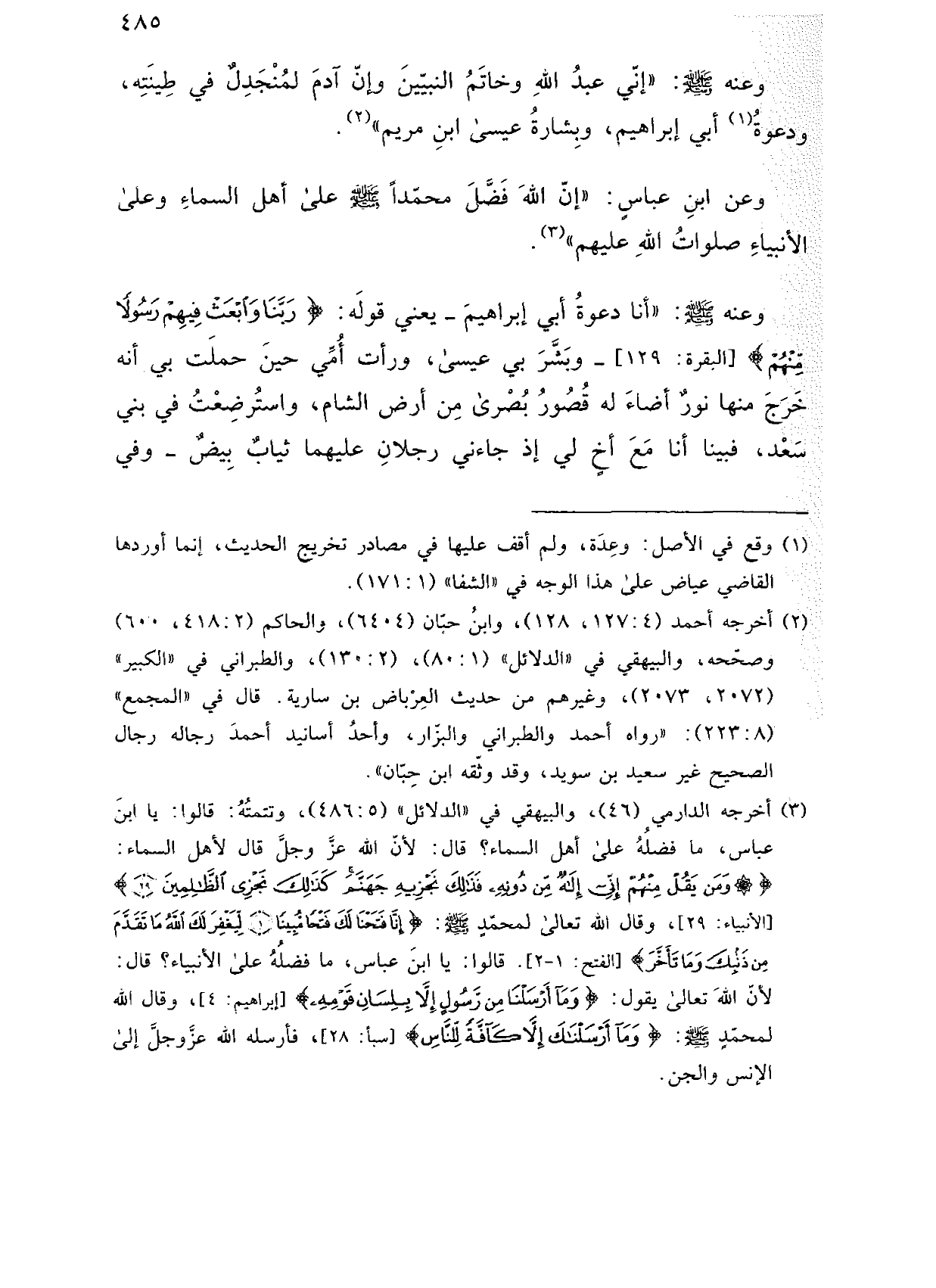 وعنه صلى الله عليه وسلم: "إني عبد الله وخاتم النبيين وإن آدم لمنجدل في طينته، ودعوة أبي إبراهيم، وبشارة عيسى ابن مريم".