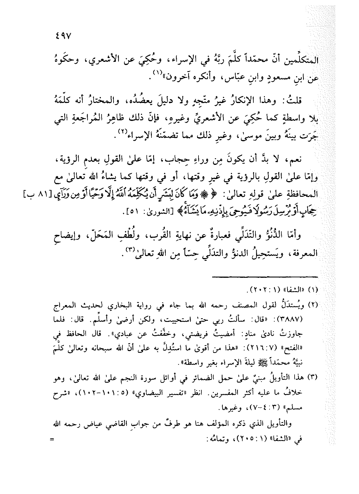 المتكلمين أن محمدًا كلم ربه في الإسراء، وحكي عن الأشعري، وحكوه عن ابن مسعود وابن عباس، وأنكره آخرون".