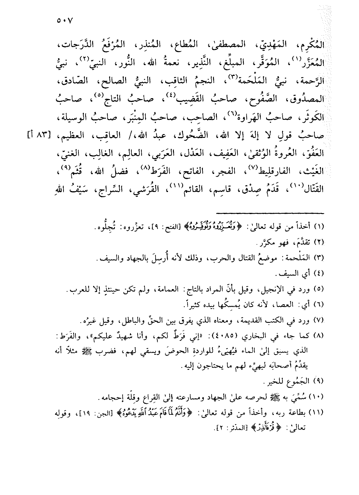 المكرم، المهدي، المصطفى، المطاع، المنذر، المرفع الدرجات، المعزر، الموقر، المبلغ، النذير، نعمة الله، النور، النبي، نبي الرحمة، نبي الملحمة، النجم الثاقب، النبي الصالح، الصادق، المصدوق، الصفوح، صاحب القضيب، صاحب التاج، صاحب الكوثر، صاحب الهراوة، الصاحب، صاحب المنبر، صاحب الوسيلة، صاحب قولِ لا إلهَ إلا الله، الضحوك، عبد الله،/ العاقب، العظيم، العفو، العروة الوثقى، العفيف، العدل، العربي، العالم، الغالب، الغني، الغيث، الفارقليط، الفجر، الفاتح، الفرط، فضل الله، قثم، القتال، قدم صدق، قاسم، القائم، القرشي، السراج، سيف الله