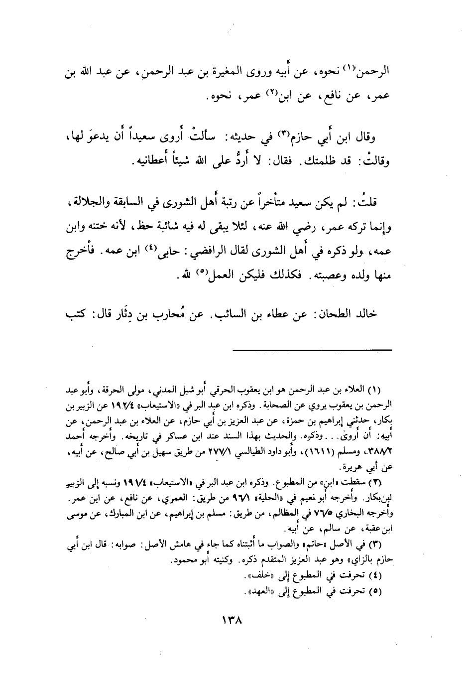 (1) العلاء بن عبد الرحمن هو ابن يعقوب الحرقي أبو شبل المدني، مولى الحرقة، وأبو عبد الرحمن بن يعقوب يروي عن الصحابة.
