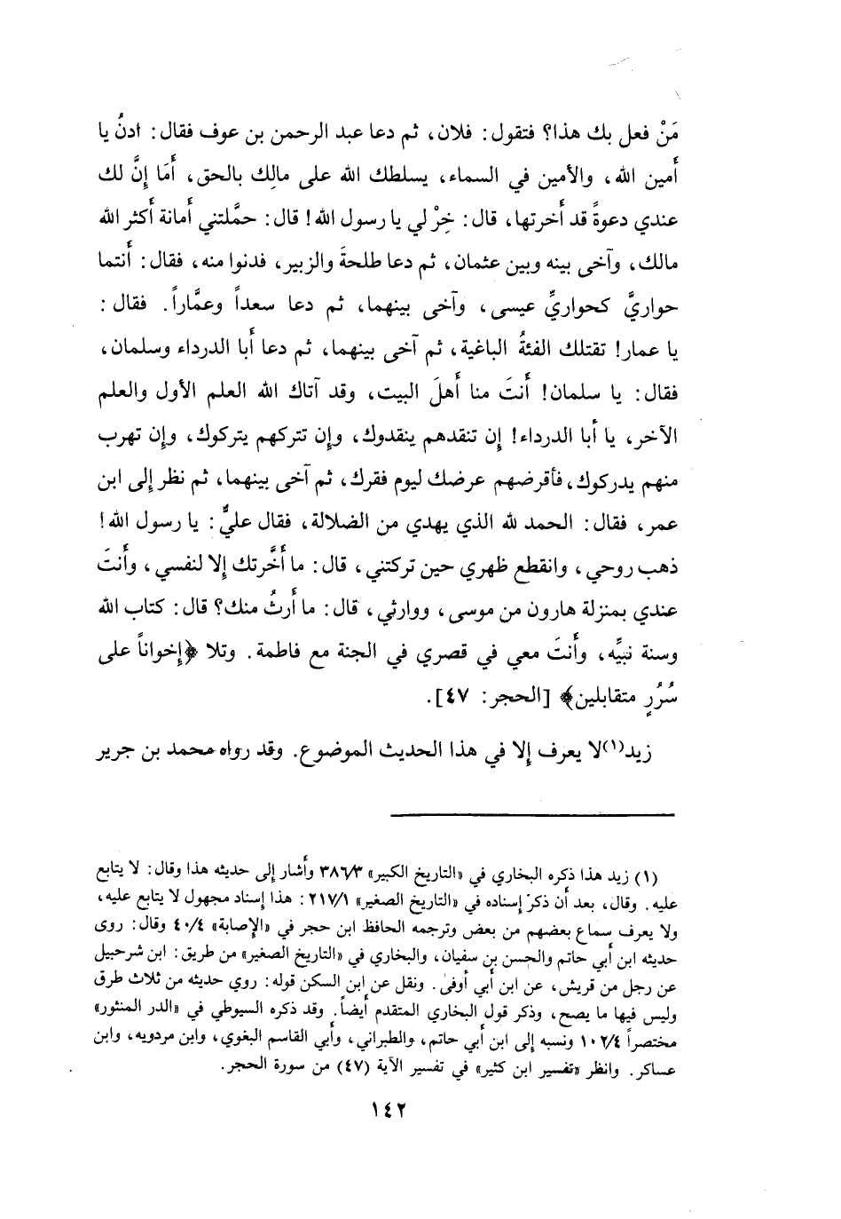 (1) زيد هذا ذكره البخاري في " التاريخ الكبير " 3 / 386 وأشار إلى حديثه هذا وقال: لا يتابع عليه.
