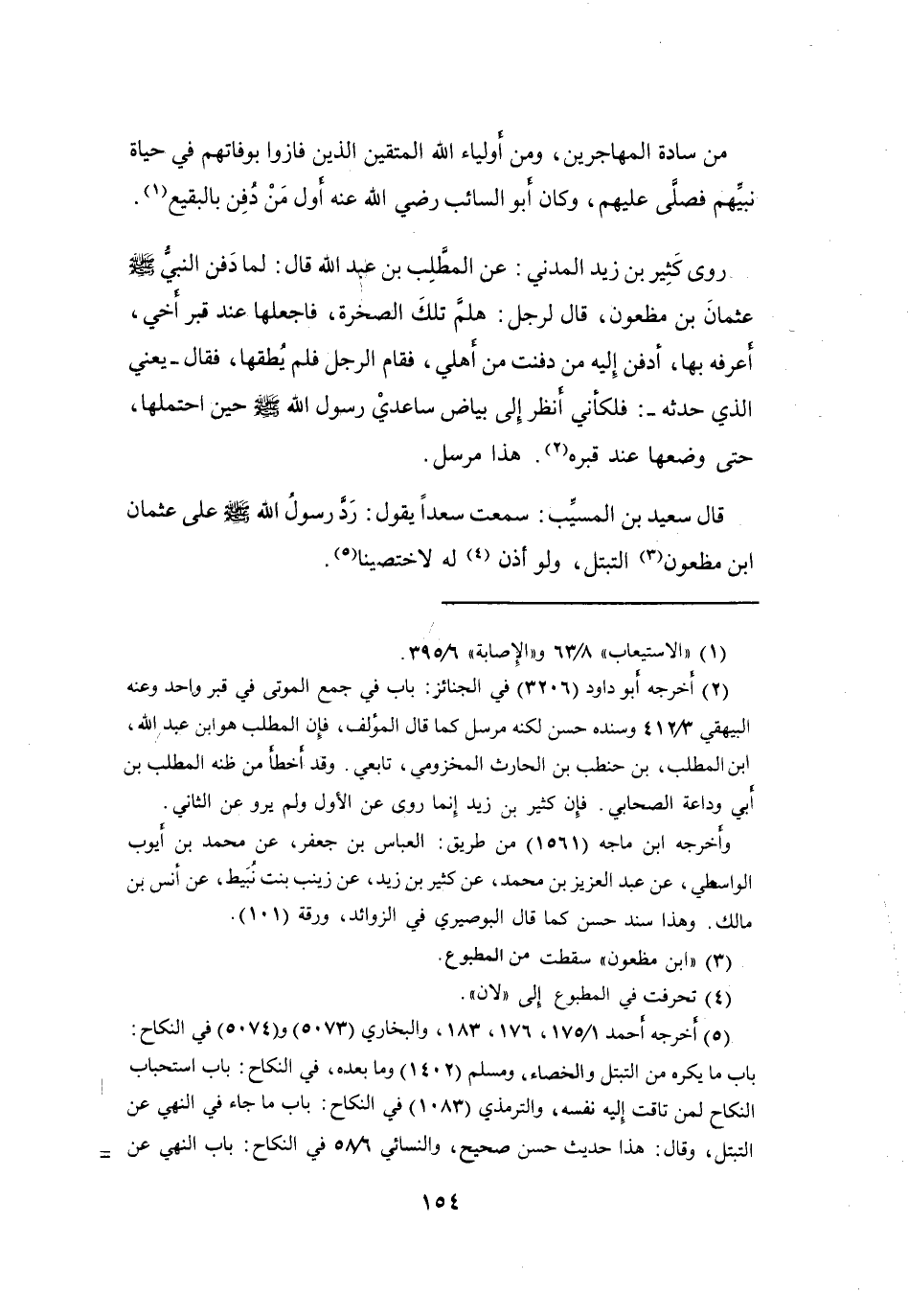 رَدَّ رَسُوْلُ اللهِ -صَلَّى اللَّهُ عَلَيْهِ وَسَلَّمَ- عَلَى عُثْمَانَ بنِ مَظْعُوْنٍ (3) التَّبَتُّلَ، وَلَوْ أَذِنَ (4) لَهُ لاَخْتَصَيْنَا (5) .