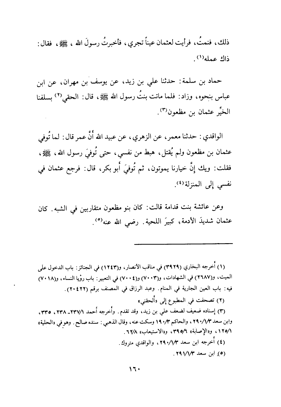 قَالَ: فَرَجَعَ عُثْمَانُ فِي نَفْسِي إِلَى المَنْزِلَةِ (4) .