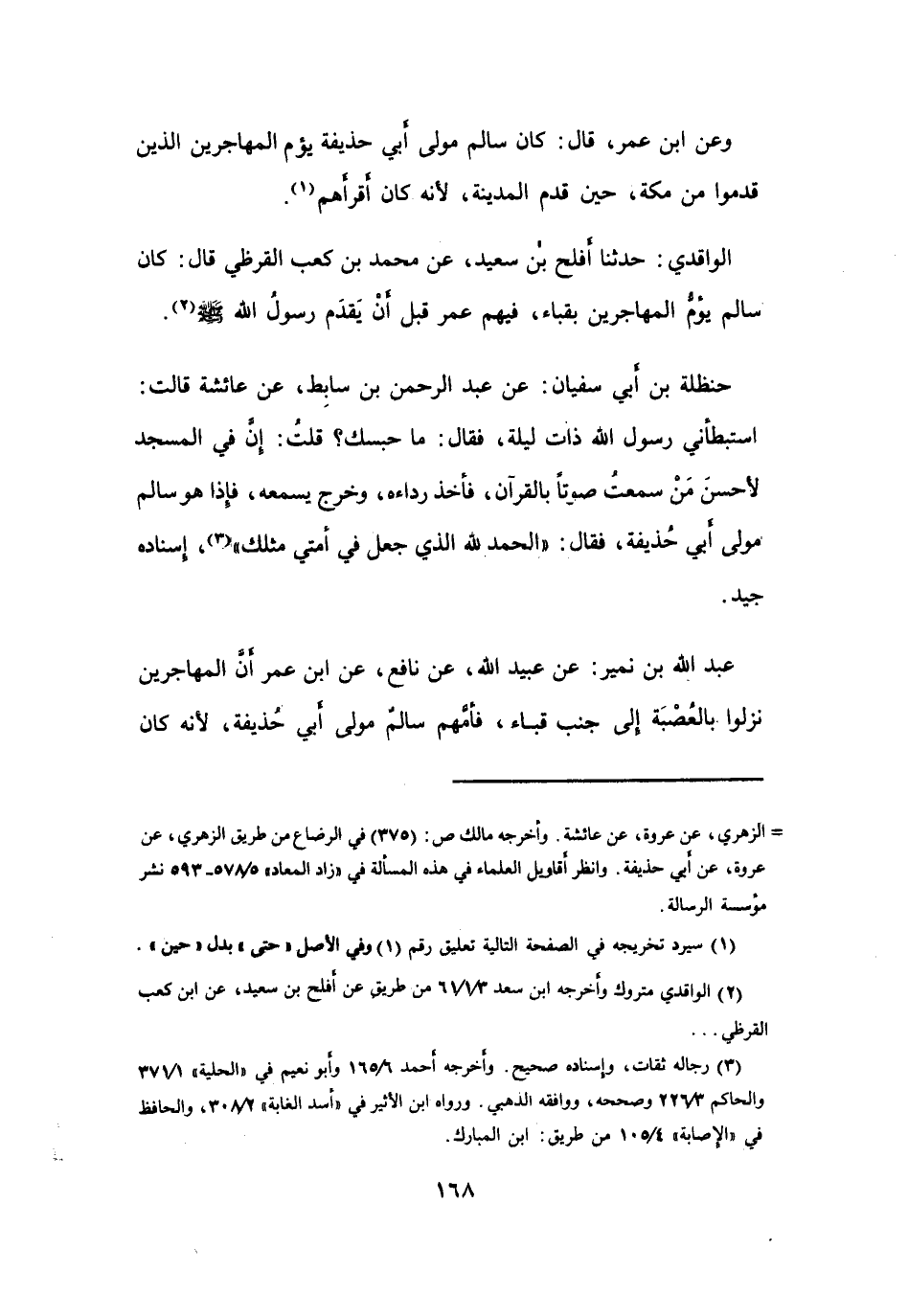 كَانَ سَالِمٌ يَؤُمُّ المُهَاجِرِيْنَ بِقُبَاءَ، فِيْهِم عُمَرُ قَبْلَ أَنْ يَقْدَمَ رَسُوْلُ اللهِ (2) -صَلَّى اللَّهُ عَلَيْهِ وَسَلَّمَ-.