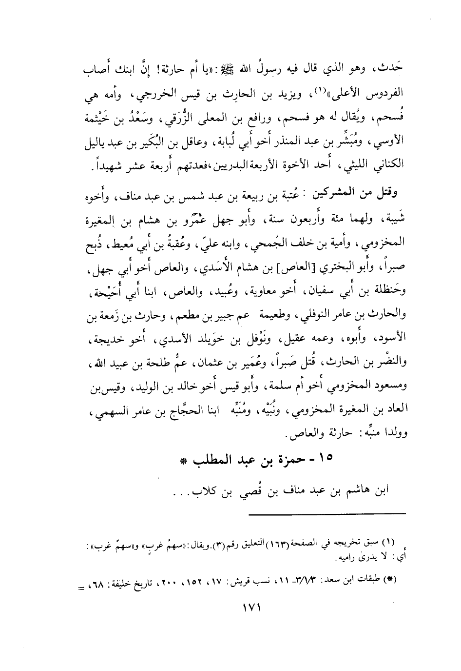 15 - حَمْزَةُ بنُ عَبْدِ المُطَّلِبِ بنِ هَاشِمِ بنِ عَبْدِ مَنَافٍ القُرَشِيُّ *