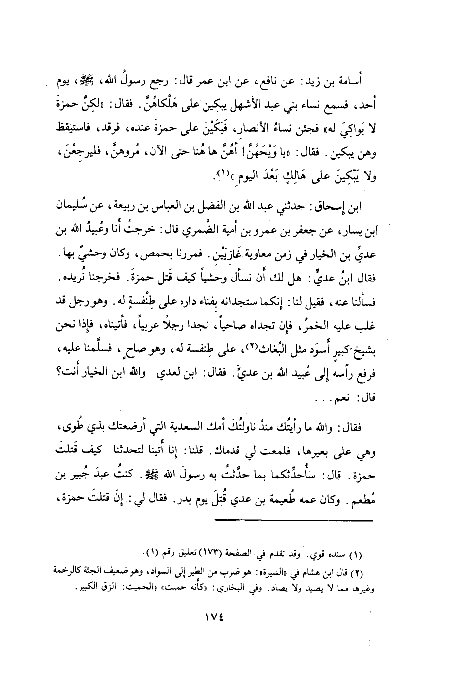 فَقَالَ ابْنُ عَدِيٍّ: هَلْ لَكَ أَنْ نَسْأَلَ وَحْشِيّاً كَيْفَ قَتَلَ حَمْزَةَ؟