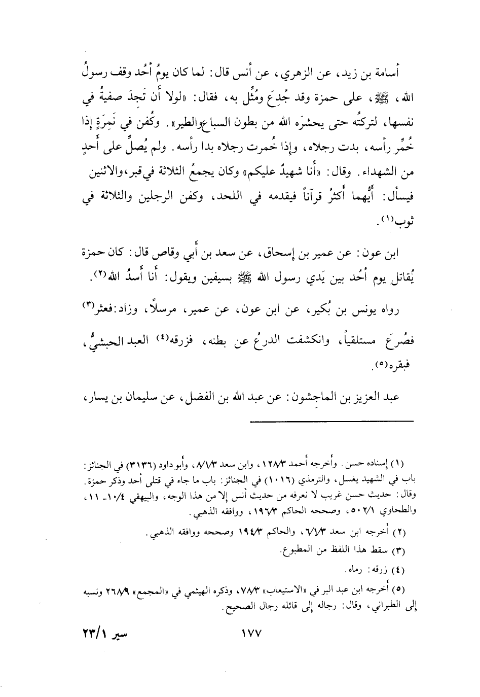 وأخرجه أحمد 3 / 128، وابن سعد 3 / 1 / 8، وأبو داود (3136) في الجنائز: باب في الشهيد يغسل، والترمذي (1016) في الجنائز: باب ما جاء في قتلى أحد وذكر حمزة.