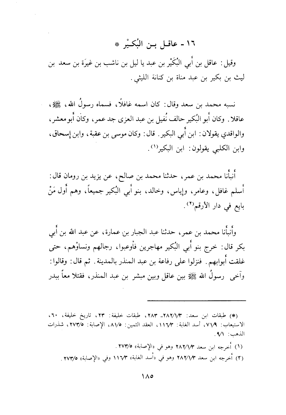 16 - عَاقِلُ بنُ البُكَيْرِ بنِ عَبْدِ يَا لَيْلَ بنِ نَاشِبٍ اللَّيْثِيُّ *