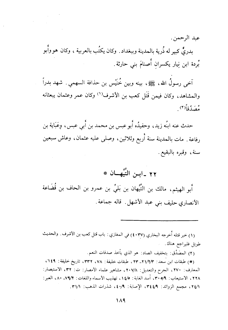 22 - ابْنُ التَّيِّهَانِ أَبُو الهَيْثَمِ مَالِكُ بنُ التَّيِّهَانِ الأَنْصَارِيُّ *