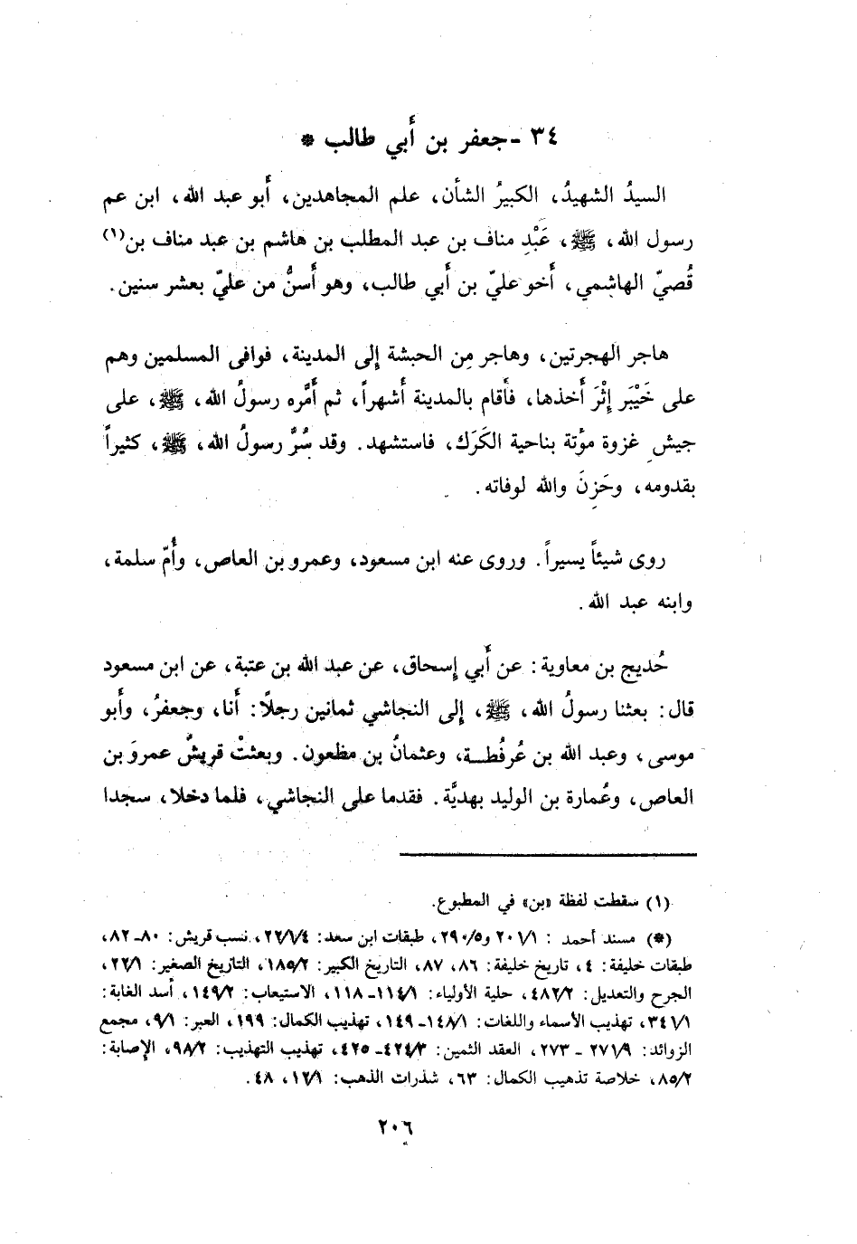 34 - جَعْفَرُ بنُ أَبِي طَالِبٍ عَبْدِ مَنَافٍ الهَاشِمِيُّ *