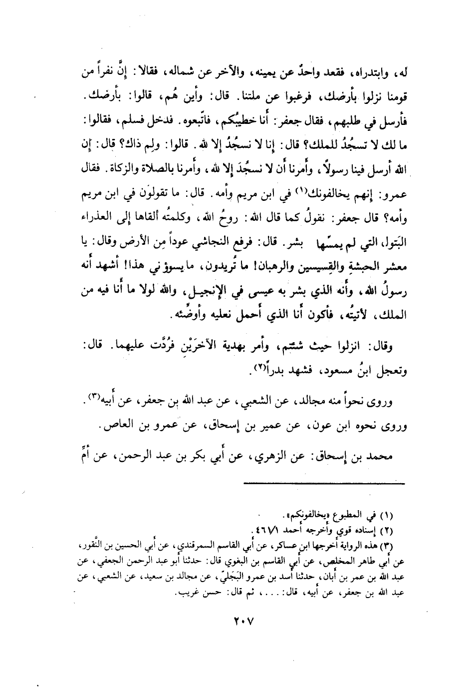 فَقَالَ عَمْرٌو: إِنَّهُم يُخَالِفُوْنَكَ (1) فِي ابْنِ مَرْيَمَ وَأُمِّهِ.