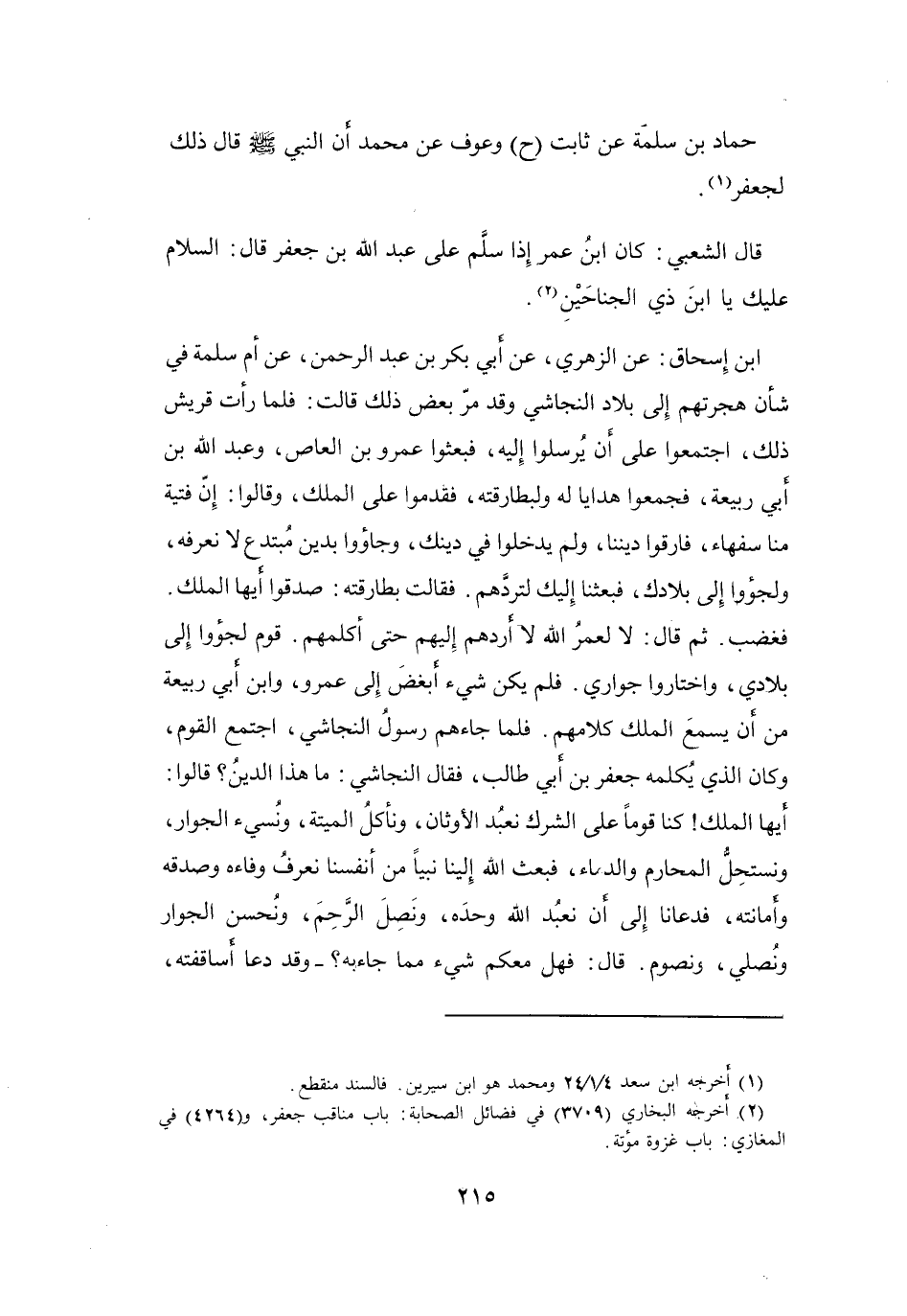 (2) أخرجه البخاري (3709) في فضائل الصحابة: باب مناقب جعفر، و (4264) في المغازي: باب غزوة مؤتة.
