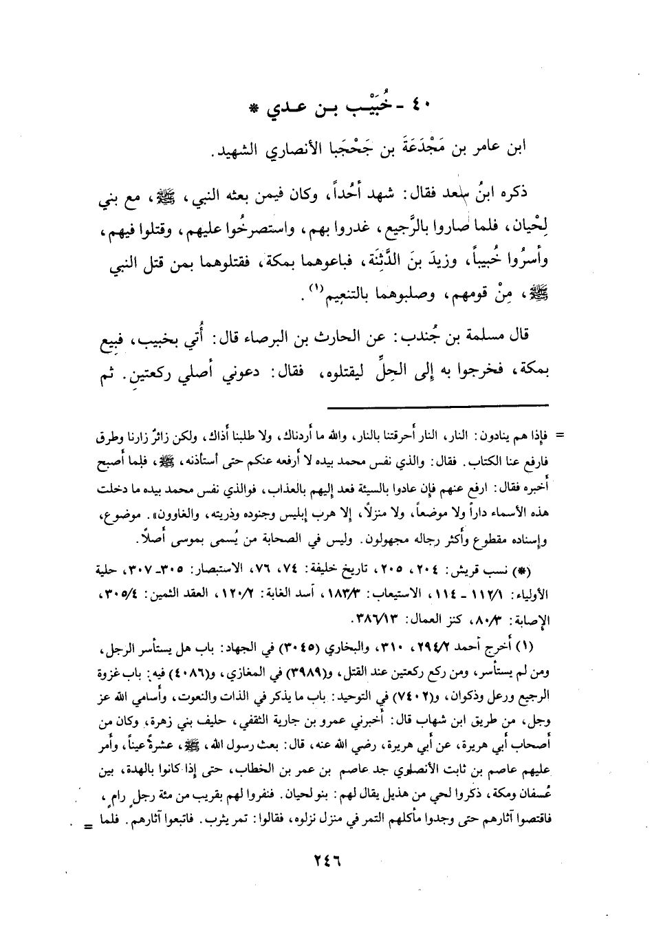 40 - خُبَيْبُ بنُ عَدِيِّ بنِ عَامِرِ بنِ مَجْدَعَةَ الأَنْصَارِيُّ *