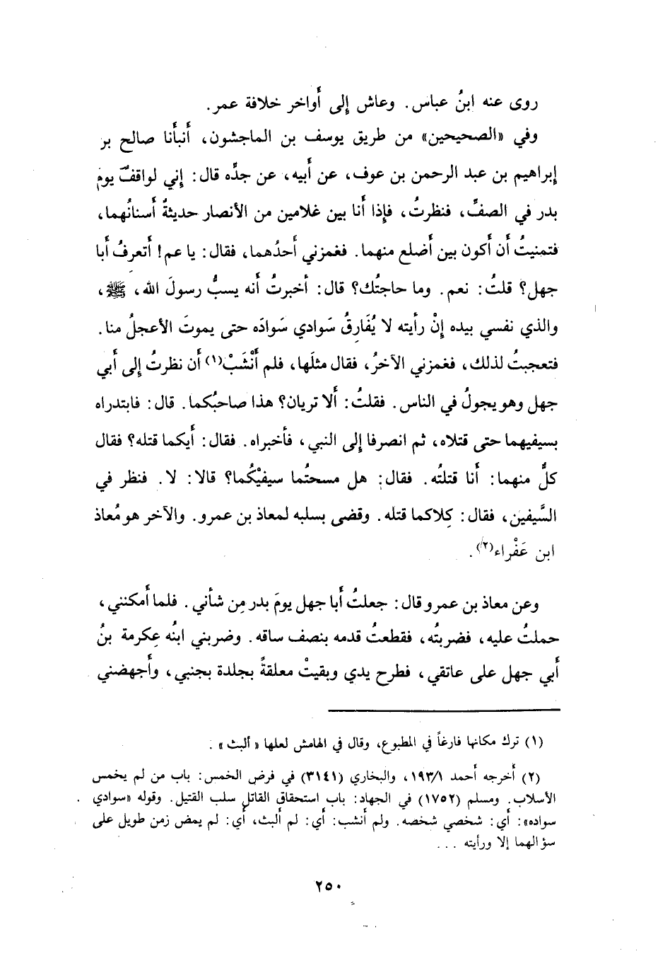 وَقَضَى بِسَلَبِهِ لِمُعَاذِ بنِ عَمْرٍو، وَالآخَرُ هُوَ مُعَاذُ بنُ عَفْرَاءَ (2) .