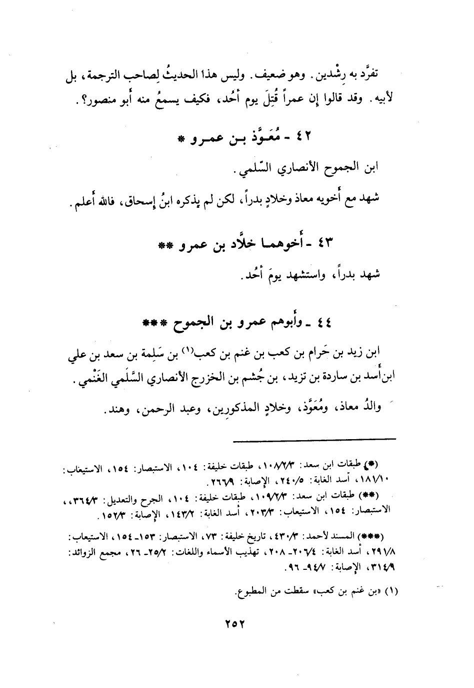 42 - مُعَوَّذُ بنُ عَمْرِو بنِ الجَمُوْحِ الأَنْصَارِيُّ السَّلَمِيُّ *