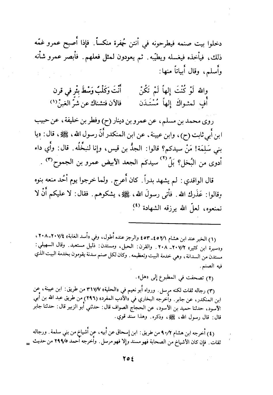 قَالَ: (وَأَيُّ دَاءٍ أَدْوَى مِنَ البُخْلِ؟ بَلْ (2) سَيِّدُكُم الجَعْدُ الأَبْيَضُ: عَمْرُو بنُ الجَمُوْحِ (3)) .