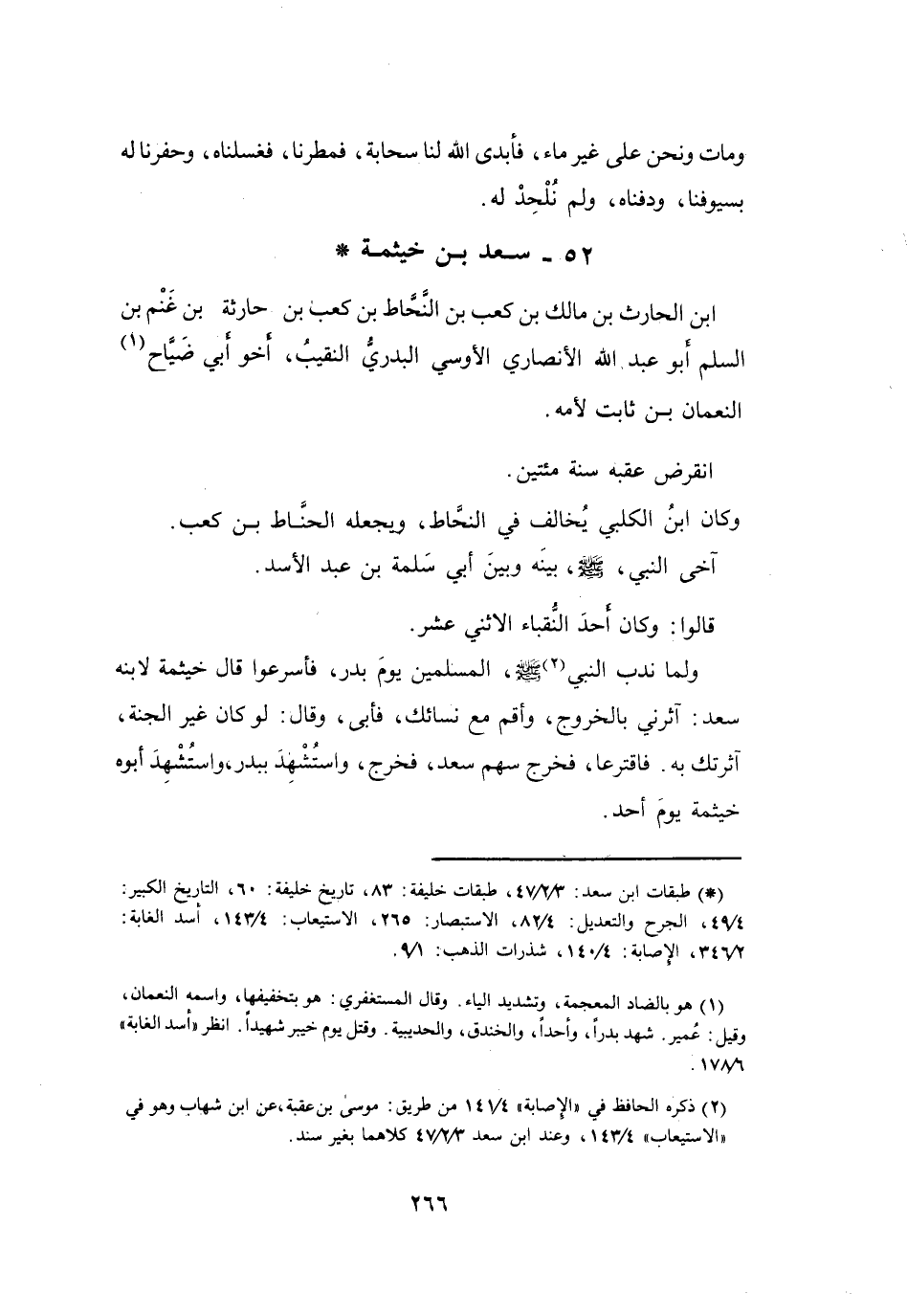 52 - سَعْدُ بنُ خَيْثَمَةَ بنِ الحَارِثِ الأَنْصَارِيُّ الأَوْسِيُّ *