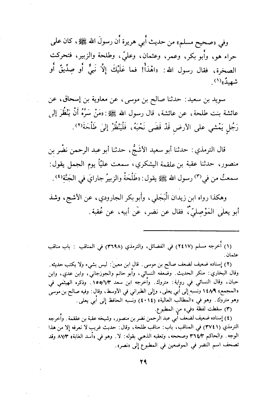 قَالَ رَسُوْلُ اللهِ -صَلَّى اللَّهُ عَلَيْهِ وَسَلَّمَ-: (مَنْ سَرَّهُ أَنْ يَنْظُرَ إِلَى رَجُلٍ يَمْشِي عَلَى الأَرْضِ، قَدْ قَضَى نَحْبَهُ، فَلْيَنْظُرْ إِلَى طَلْحَةَ (2)) .