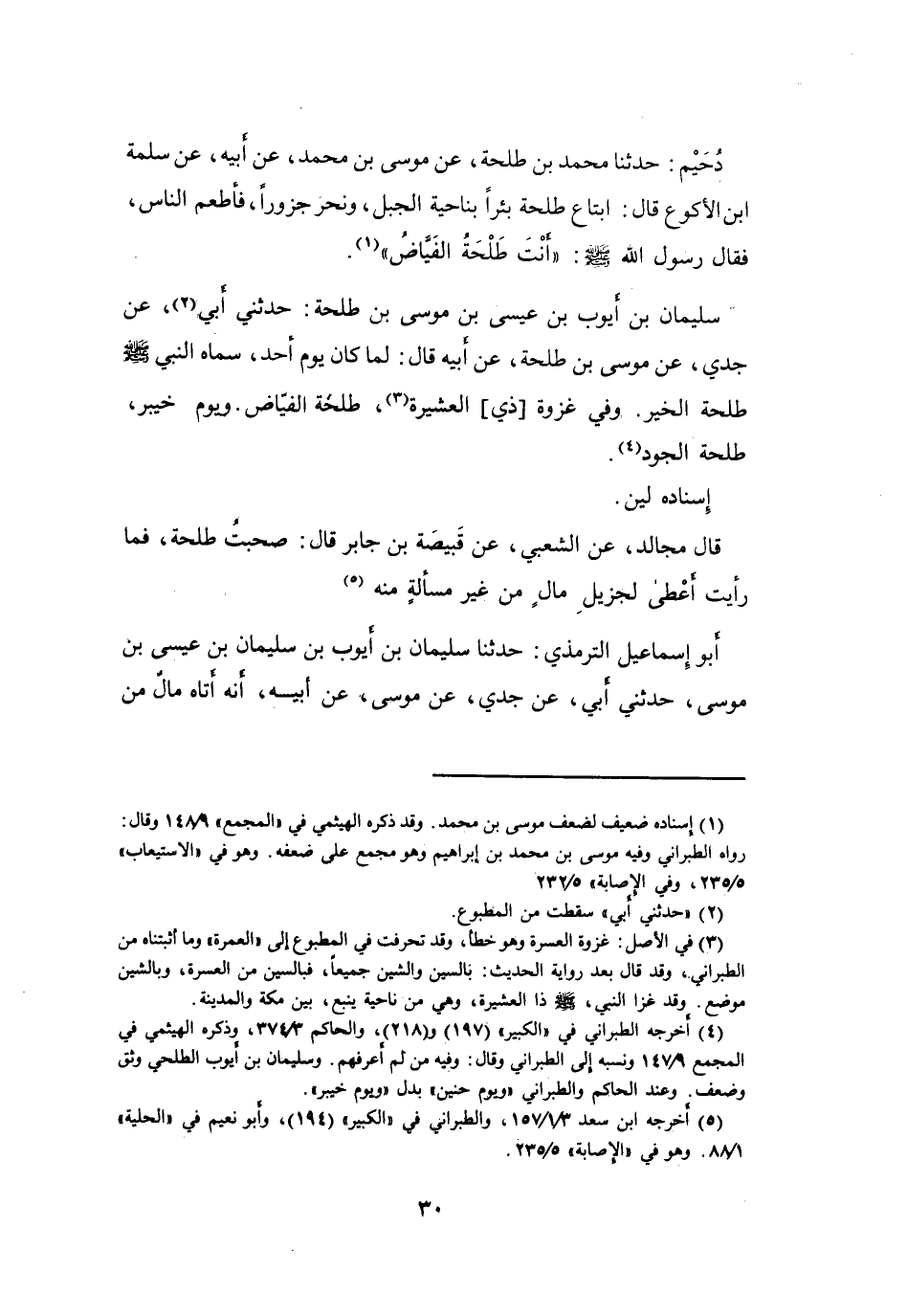 سُلَيْمَانُ بنُ أَيُّوْبَ بنِ عِيْسَى بنِ مُوْسَى بنِ طَلْحَةَ: حَدَّثَنِي أَبِي (2) ، عَنْ جَدِّي، عَنْ مُوْسَى بنِ طَلْحَةَ، عَنْ أَبِيْهِ، قَالَ: