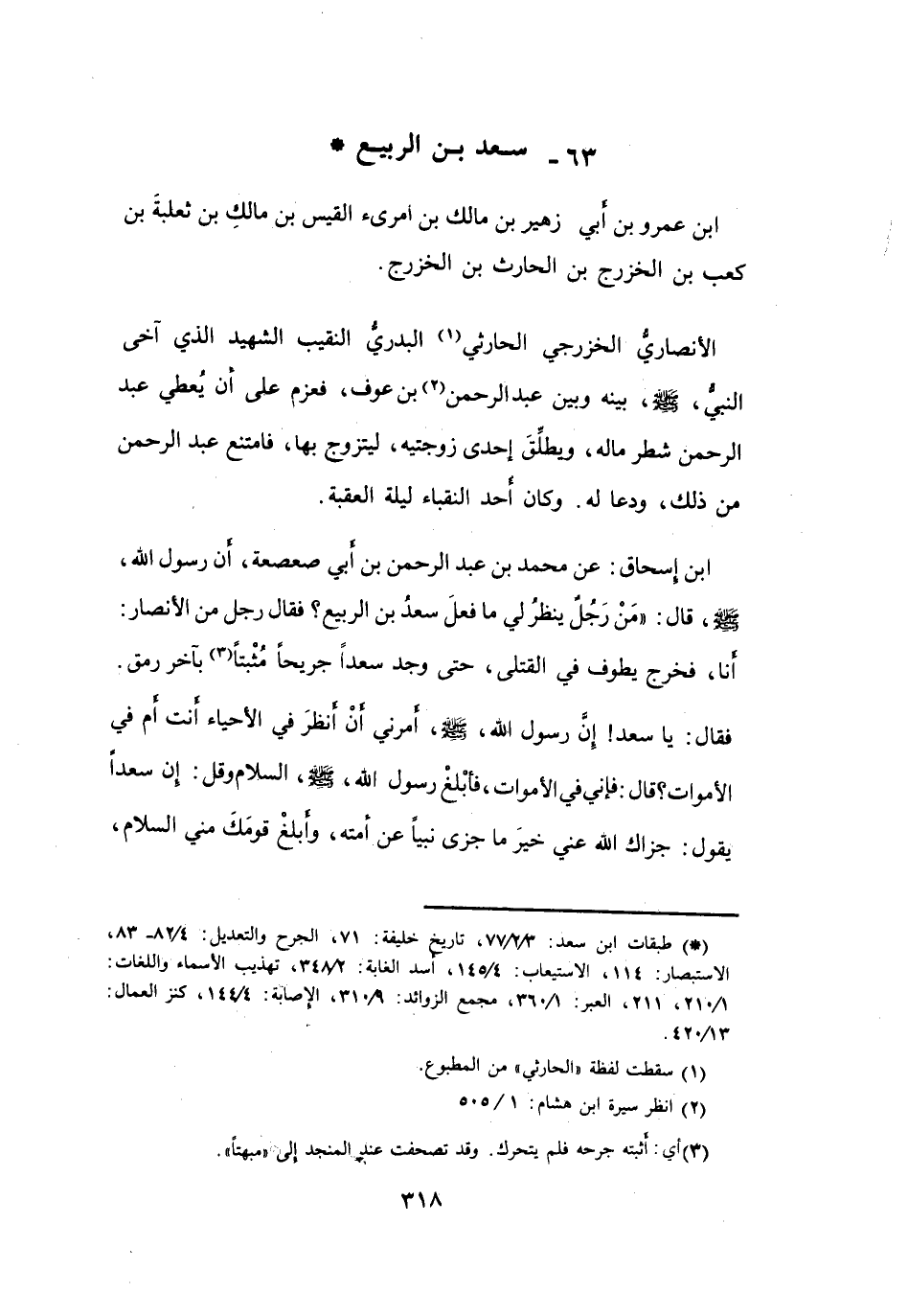 63 - سَعْدُ بنُ الرَّبِيْعِ بنِ عَمْرِو بنِ أَبِي زُهَيْرٍ الأَنْصَارِيُّ *