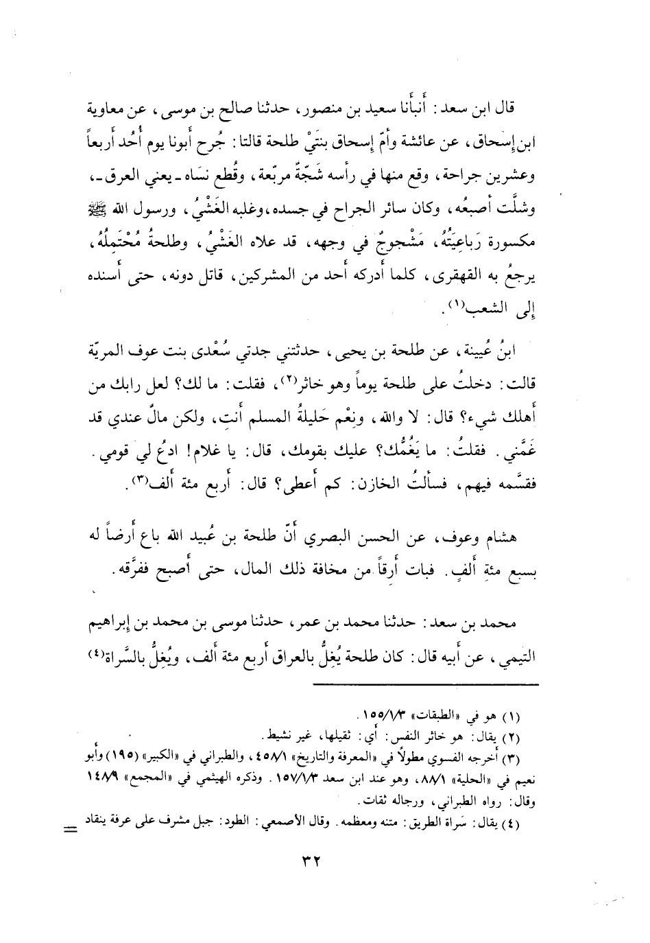 كَانَ طَلْحَةُ يُغِلُّ بِالعِرَاقِ أَرْبَعَ مَائَةِ أَلْفٍ، وَيُغِلُّ بِالسَّرَاةِ (4)