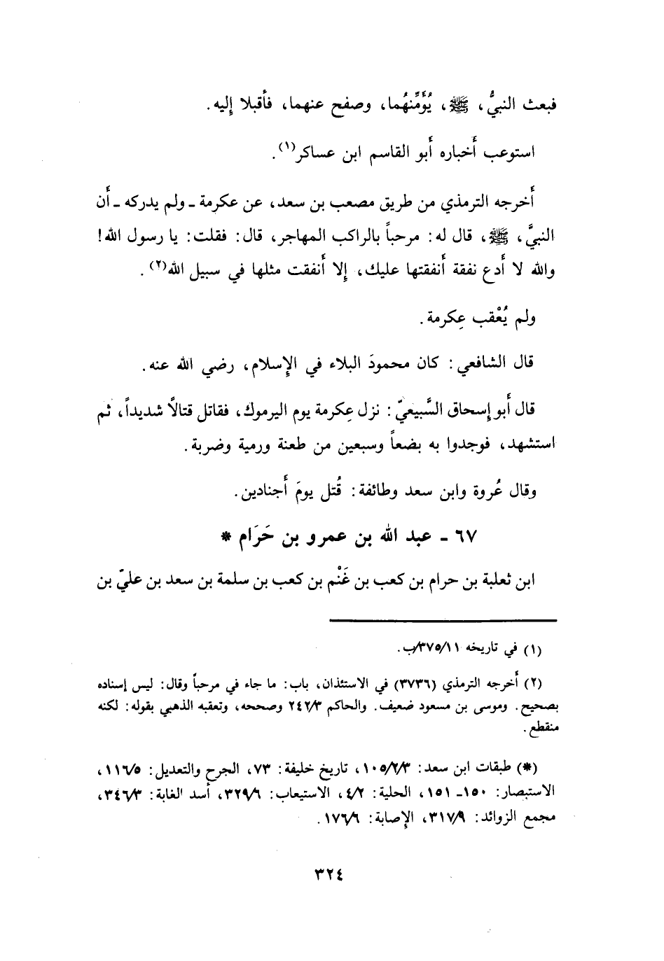 (*) طبقات ابن سعد: 3 / 2 / 105، تاريخ خليفة: 73، الجرح والتعديل: 5 / 116، الاستبصار: 150 - 151، الحلية: 2 / 4، الاستيعاب: 6 / 329، أسد الغابة: 3 / 346، مجمع الزوائد: 9 / 317، الإصابة: 6 / 176.
