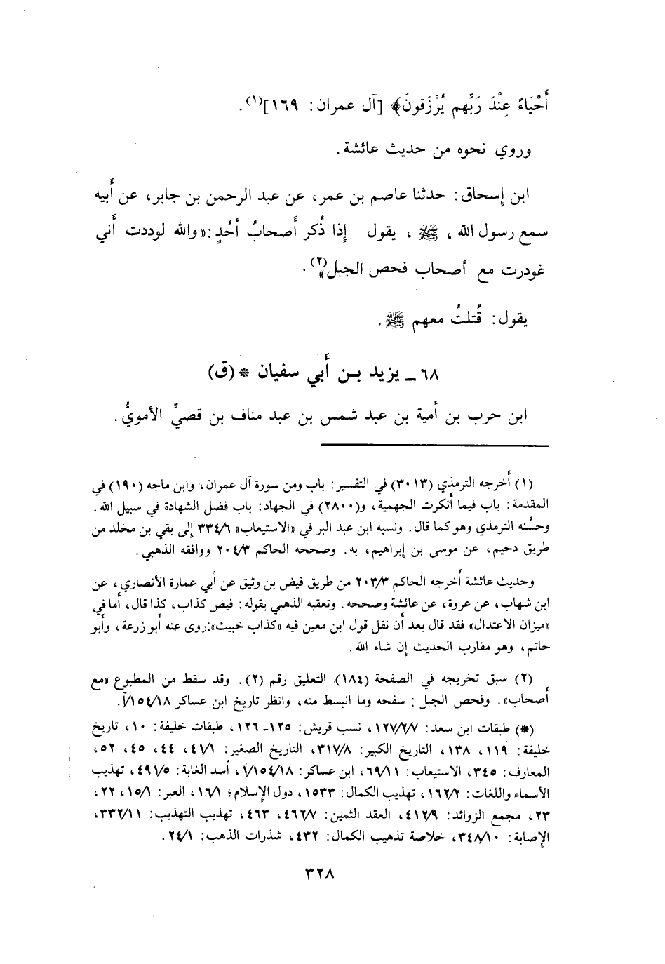 (1) أخرجه الترمذي (3013) في التفسير: باب ومن سورة آل عمران، وابن ماجه (190) في المقدمة: باب فيما أنكرت الجهمية، و (2800) في الجهاد: باب فضل الشهادة في سبيل الله.