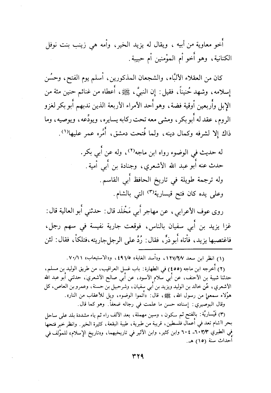 (1) انظر ابن سعد 7 / 2 / 127، و" أسد الغابة " 5 / 491، و" الاستيعاب " 11 / 70.