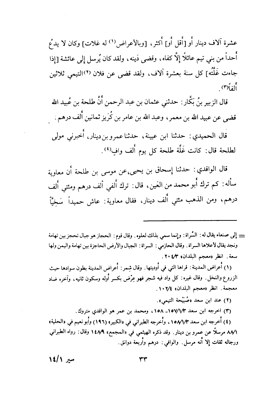 كَانَتْ غَلَّةُ طَلْحَةَ كُلَّ يَوْمٍ أَلْفَ وَافٍ (4) .
