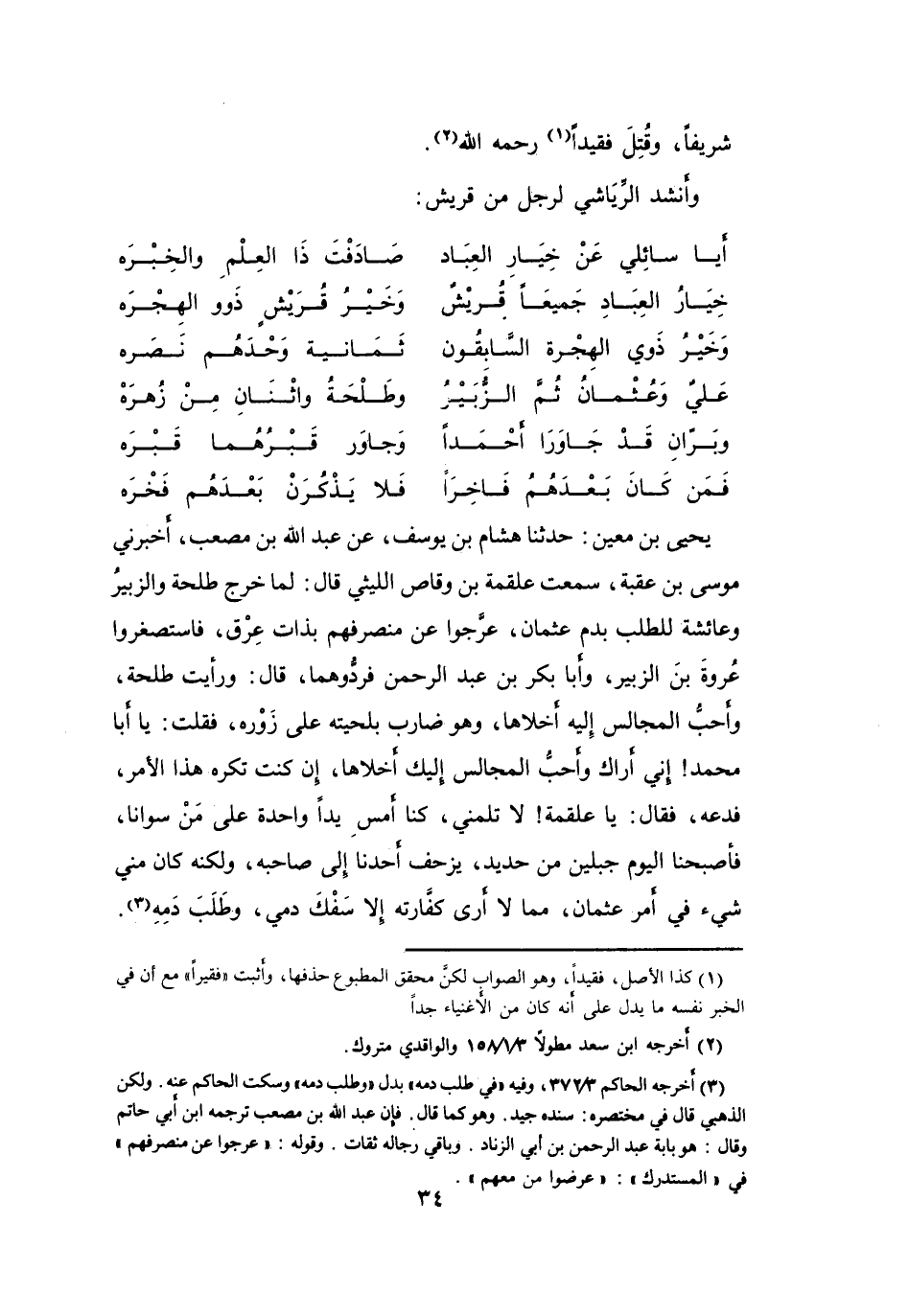 (1) كذا الأصل، فقيدا، وهو الصواب لكن محقق المطبوع حذفها، وأثبت " فقيرا " مع أن في الخبر نفسه ما يدل على أنه كان من الاغنياء جدا
