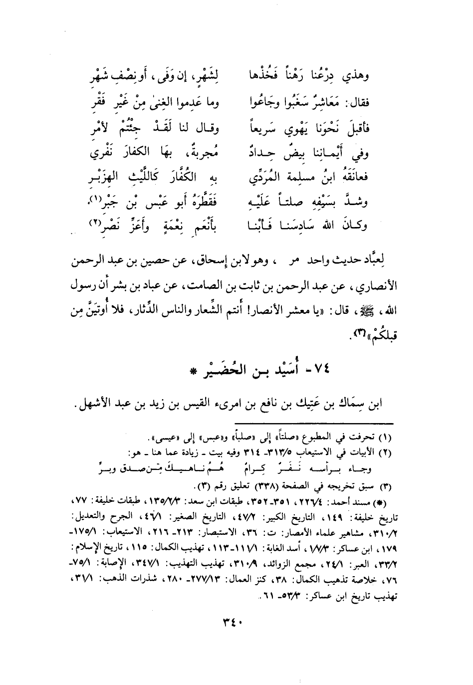 74 - أُسَيْدُ بنُ الحُضَيْرِ بنِ سِمَاكِ بنِ عَتِيْكٍ الأَنْصَارِيُّ *
