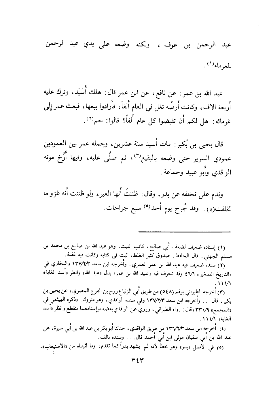 (5) في الأصل " بدر " وهو خطأ لأنه لم يشهد بدرا كما تقدم، وما أثبتناه من " الاستيعاب "
