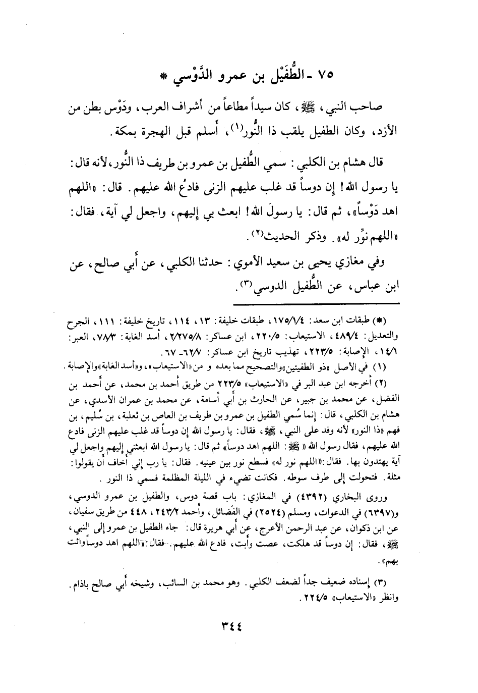 75 - الطُّفَيْلُ بنُ عَمْرِو بنِ طَرِيْفٍ الدَّوْسِيُّ *
