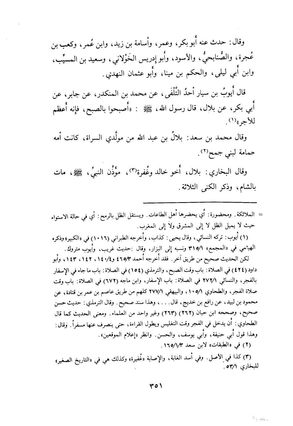 وَقَالَ البُخَارِيُّ: بِلاَلٌ أَخُو خَالِدٍ وَغُفْرَةَ (3) ، مُؤَذِّنُ النَّبِيِّ -صَلَّى اللَّهُ عَلَيْهِ وَسَلَّمَ- مَاتَ بِالشَّامِ. وَذَكَرَ الكُنَى الثَّلاَثَةَ.