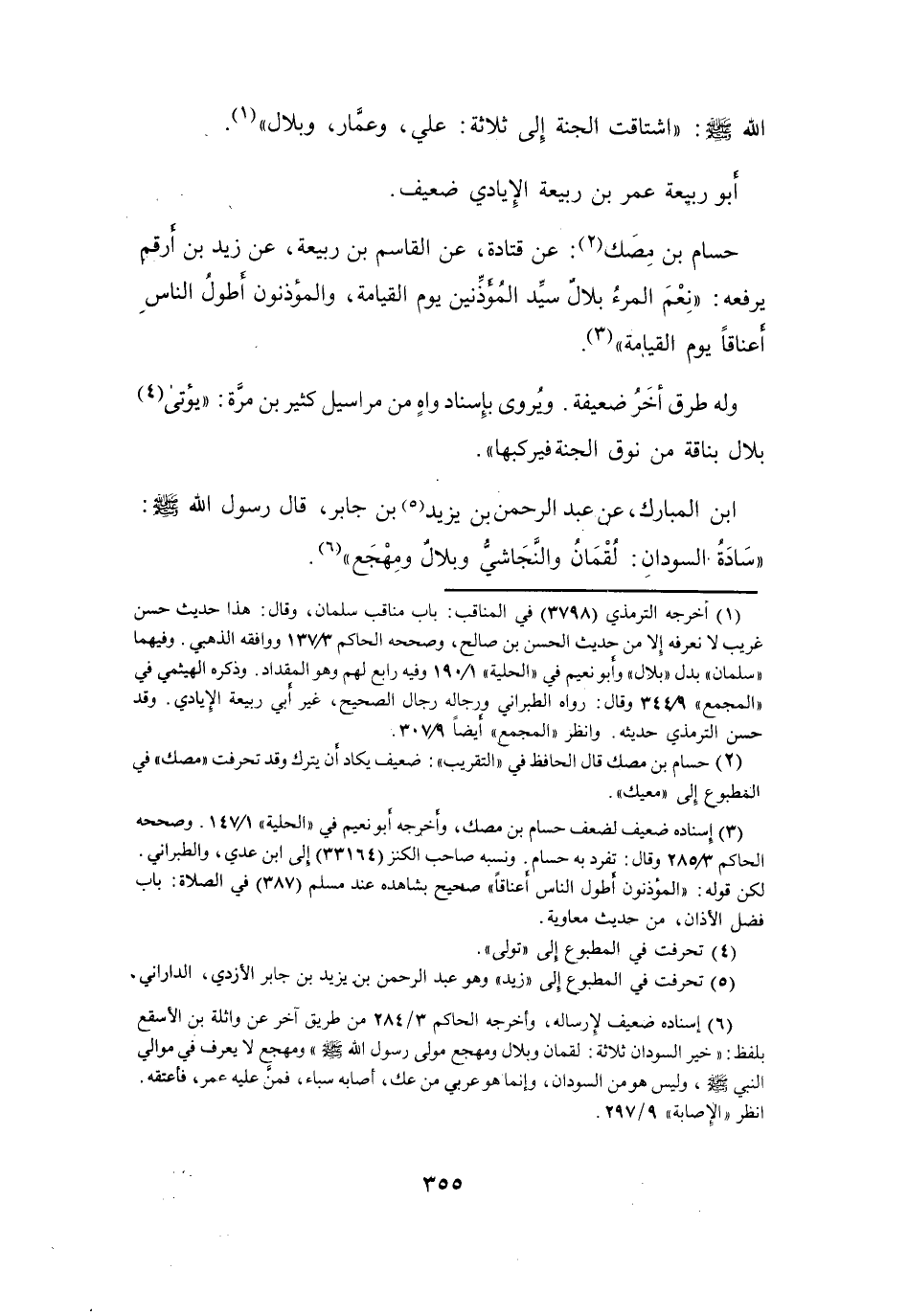عَنْ زَيْدِ بنِ أَرْقَمَ يَرْفَعُهُ: (نِعْمَ المَرْءُ بِلاَلٌ، سَيِّدُ المُؤَذِّنِيْنَ يَوْمَ القِيَامَةِ، وَالمُؤَذِّنُوْنَ أَطْوَلُ النَّاسِ أَعْنَاقاً يَوْمَ القِيَامَةِ (3)) .