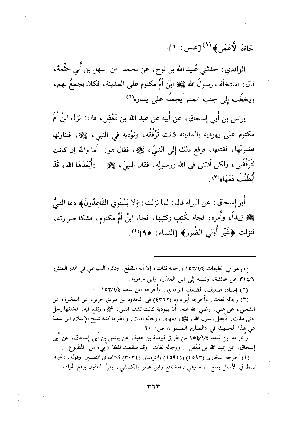 (1) هو في الطبقات 4 / 1 / 153 ورجاله ثقات، إلا أنه منقطع.