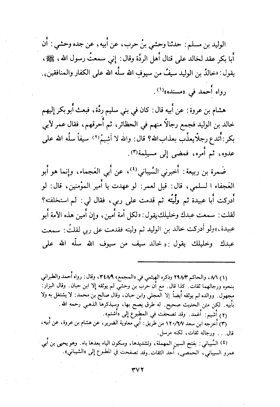 إِنِّي سَمِعْتُ رَسُوْلَ اللهِ -صَلَّى اللَّهُ عَلَيْهِ وَسَلَّمَ- يَقُوْلُ: (خَالِدُ بنُ الوَلِيْدِ سَيْفٌ مِنْ سُيُوْفِ اللهِ، سَلَّهُ اللهُ عَلَى الكُفَّارِ وَالمُنَافِقِيْنَ) .
