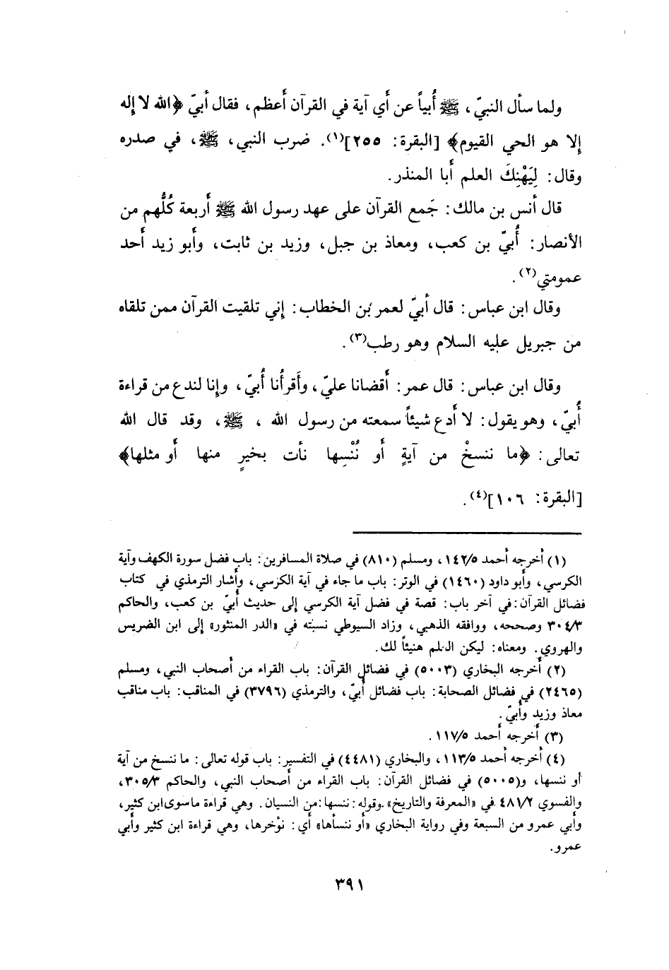 (4) أخرجه أحمد 5 / 113، والبخاري (4481) في التفسير: باب قوله تعالى: ما ننسخ من آية أو ننسها، و (5005) في فضائل القرآن: باب القراء من أصحاب النبي، والحاكم 3 / 305، والفسوي 2 / 481 في " المعرفة والتاريخ ".