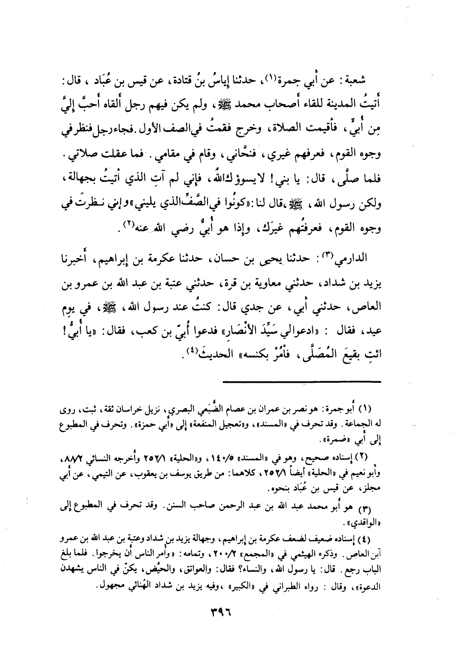 أَتَيْتُ المَدِيْنَةَ لِلِقَاءِ أَصْحَابِ مُحَمَّدٍ -صَلَّى اللَّهُ عَلَيْهِ وَسَلَّمَ- وَلَمْ يَكُنْ فِيْهِم رَجُلٌ أَلْقَاهُ أَحَبَّ إِلَيَّ مِنْ أُبَيٍّ، فَأُقِيْمَتِ الصَّلاَةُ، وَخَرَجَ، فَقُمْتُ فِي الصَّفِّ الأَوَّلِ.
