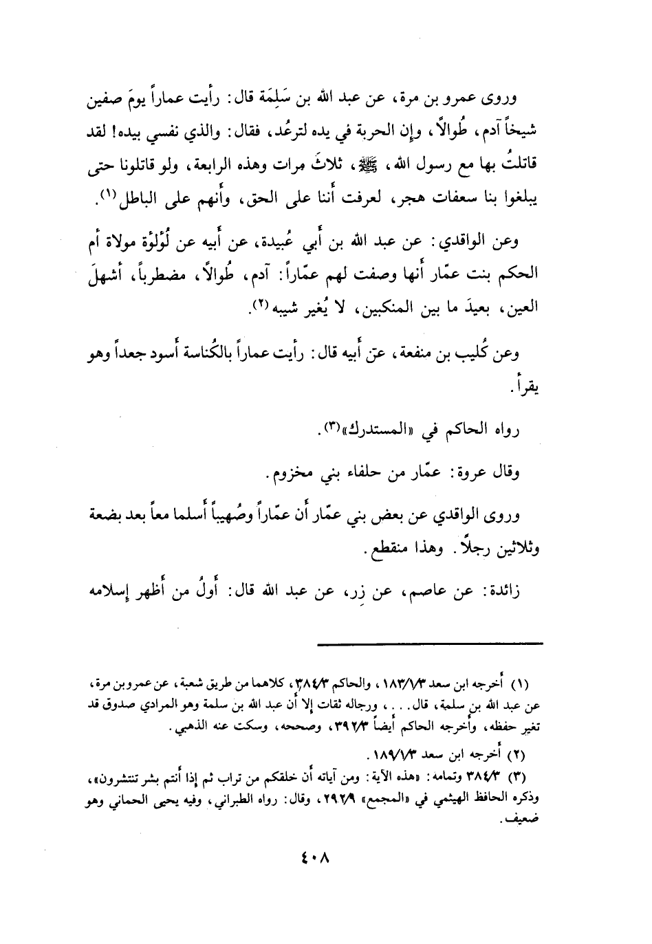 (1) أخرجه ابن سعد 3 / 1 / 183، والحاكم 3 / 384، كلاهما من طريق شعبة، عن عمرو بن مرة، عن عبد الله بن سلمة، قال ... ، ورجاله ثقات إلا أن عبد الله بن سلمة وهو المرادي صدوق قد تغير حفظه، وأخرجه الحاكم أيضا 3 / 392، وصححه، وسكت عنه الذهبي.