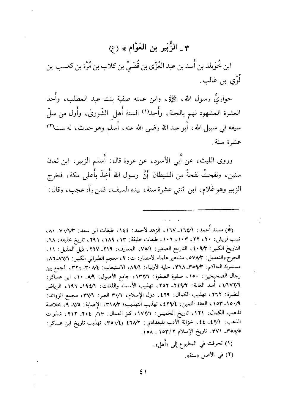3 - الزُّبَيْرُ بنُ العَوَّامِ بنِ خُوَيْلِدِ بنِ أَسَدِ بنِ عَبْدِ العُزَّى * (ع)