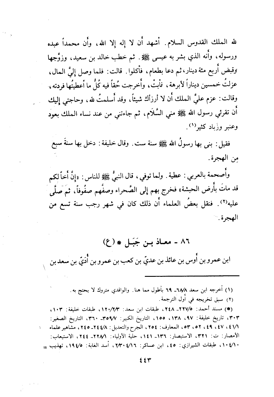 86 - مُعَاذُ بنُ جَبَلِ بنِ عَمْرِو بنِ أَوْسٍ الأَنْصَارِيُّ * (ع)