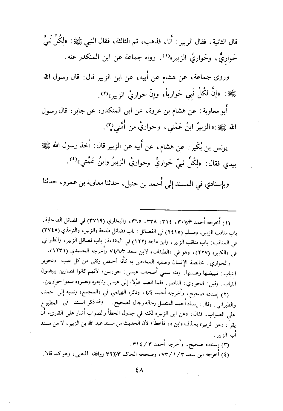 قَالَ رَسُوْلُ اللهِ -صَلَّى اللَّهُ عَلَيْهِ وَسَلَّمَ-: (الزُّبَيْرُ ابْنُ عَمَّتِي، وَحَوَارِيَّ مِنْ أُمَّتِي (3)) .