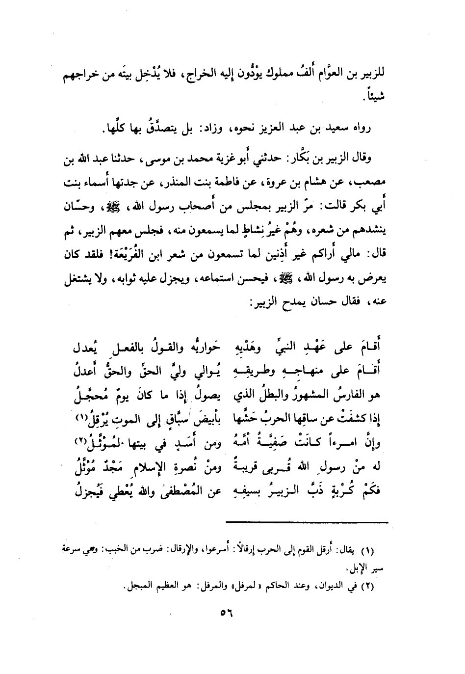 فَقَالَ حَسَّانُ يَمْدَحُ الزُّبَيْرَ: