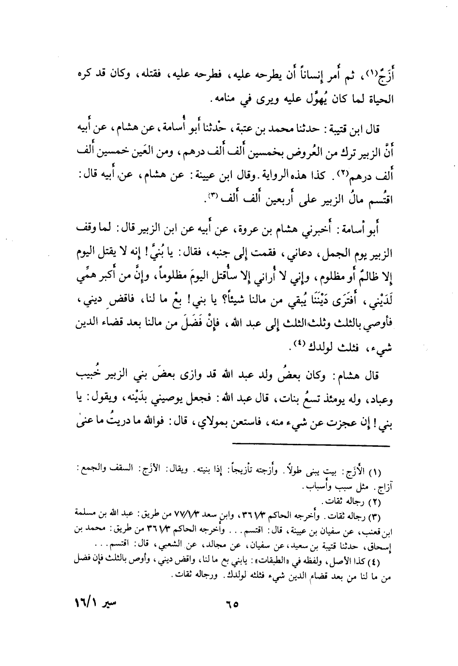 أَنَّ الزُّبَيْرَ تَرَكَ مِنَ العُرُوْضِ: بِخَمْسِيْنَ أَلْفِ أَلْفِ دِرْهَمٍ، وَمِنَ العَيْنِ: خَمْسِيْنَ أَلفِ أَلفِ دِرْهَمٍ (2) .