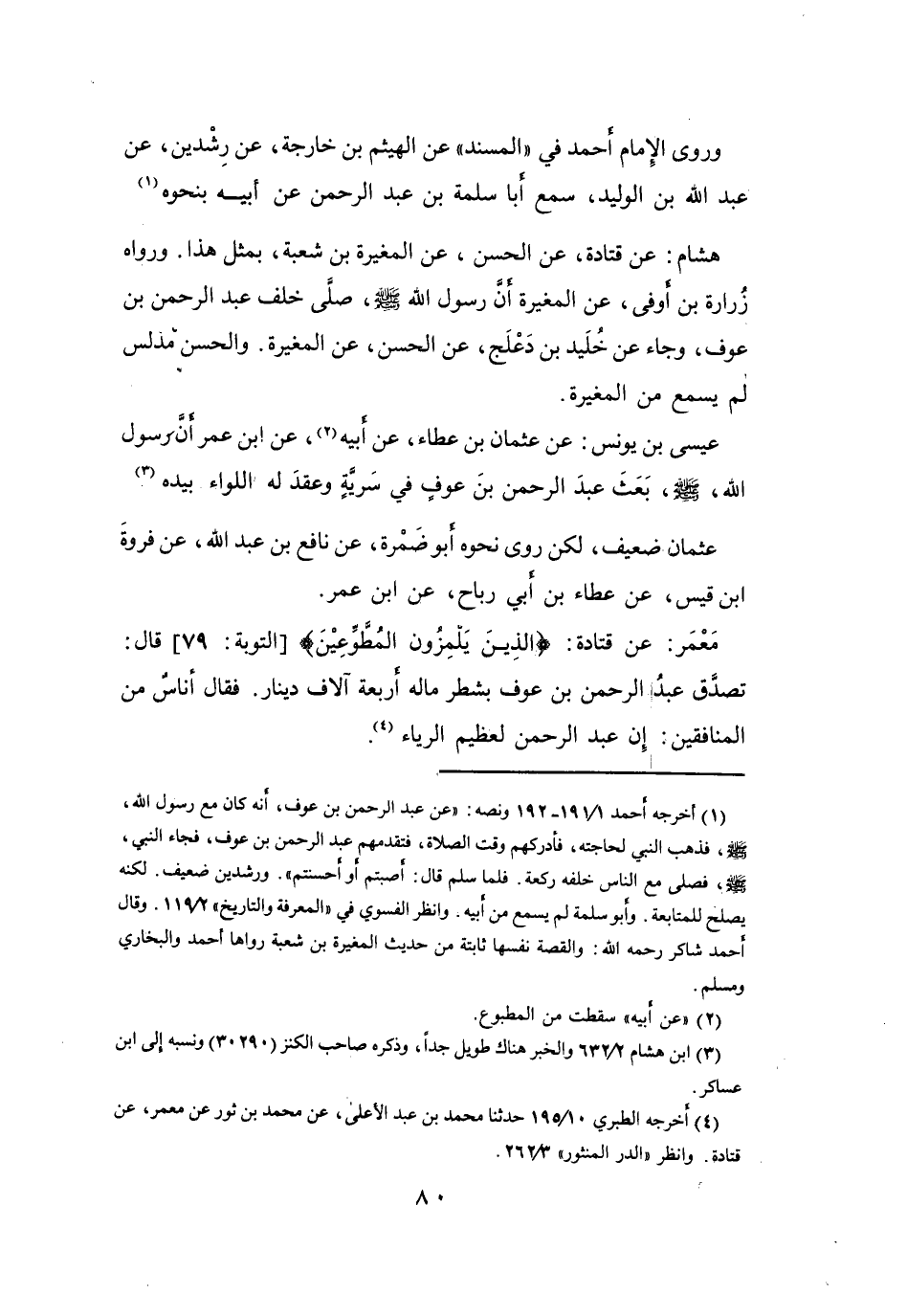 فَقَالَ أُنَاسٌ مِنَ المُنَافِقِيْنَ: إِنَّ عَبْدَ الرَّحْمَنِ لَعَظِيْمُ الرِّيَاءِ (4) .