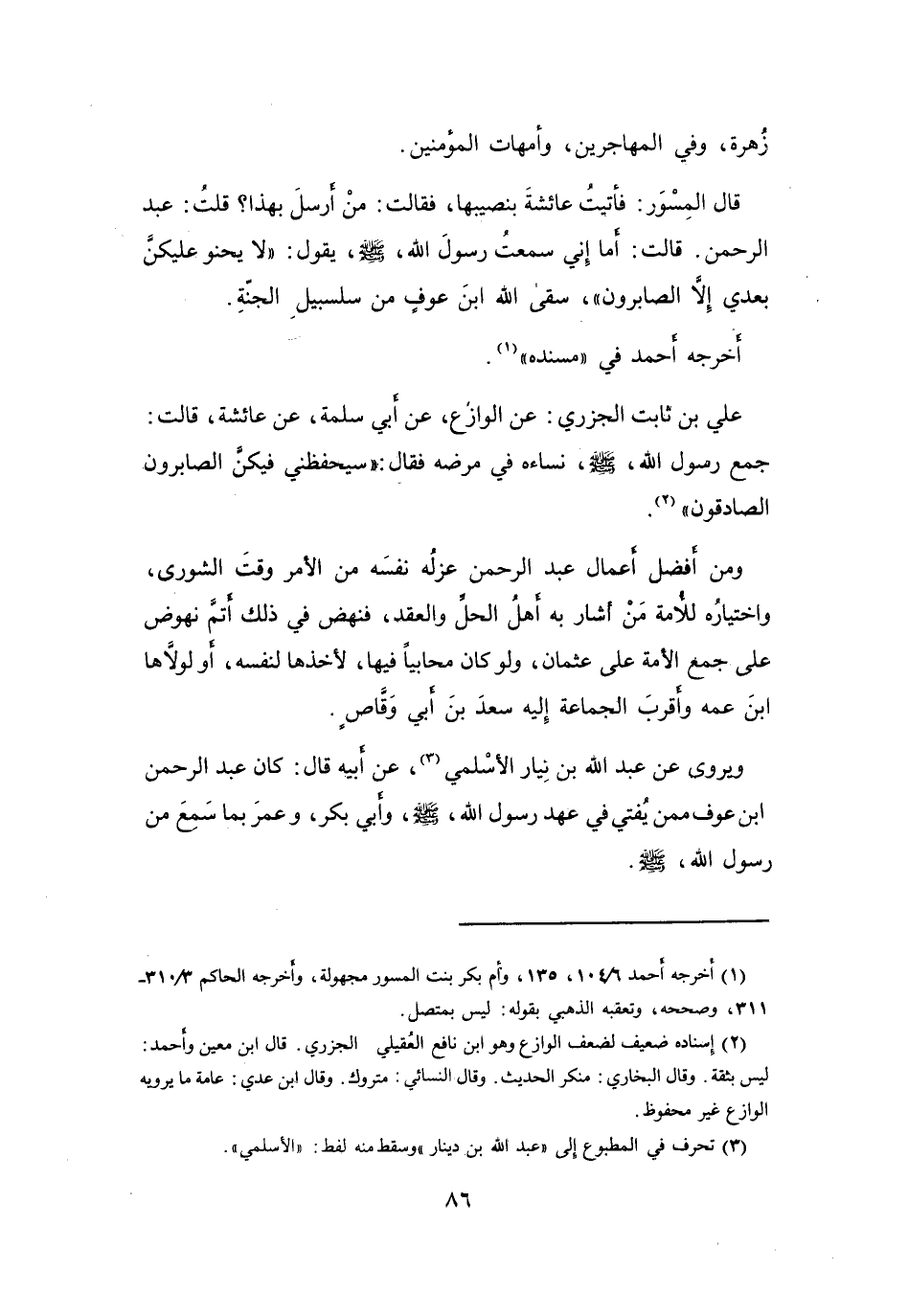 زُهْرَةَ، وَفِي المُهَاجِرِيْنَ، وَأُمَّهَاتِ المُؤْمِنِيْنَ.