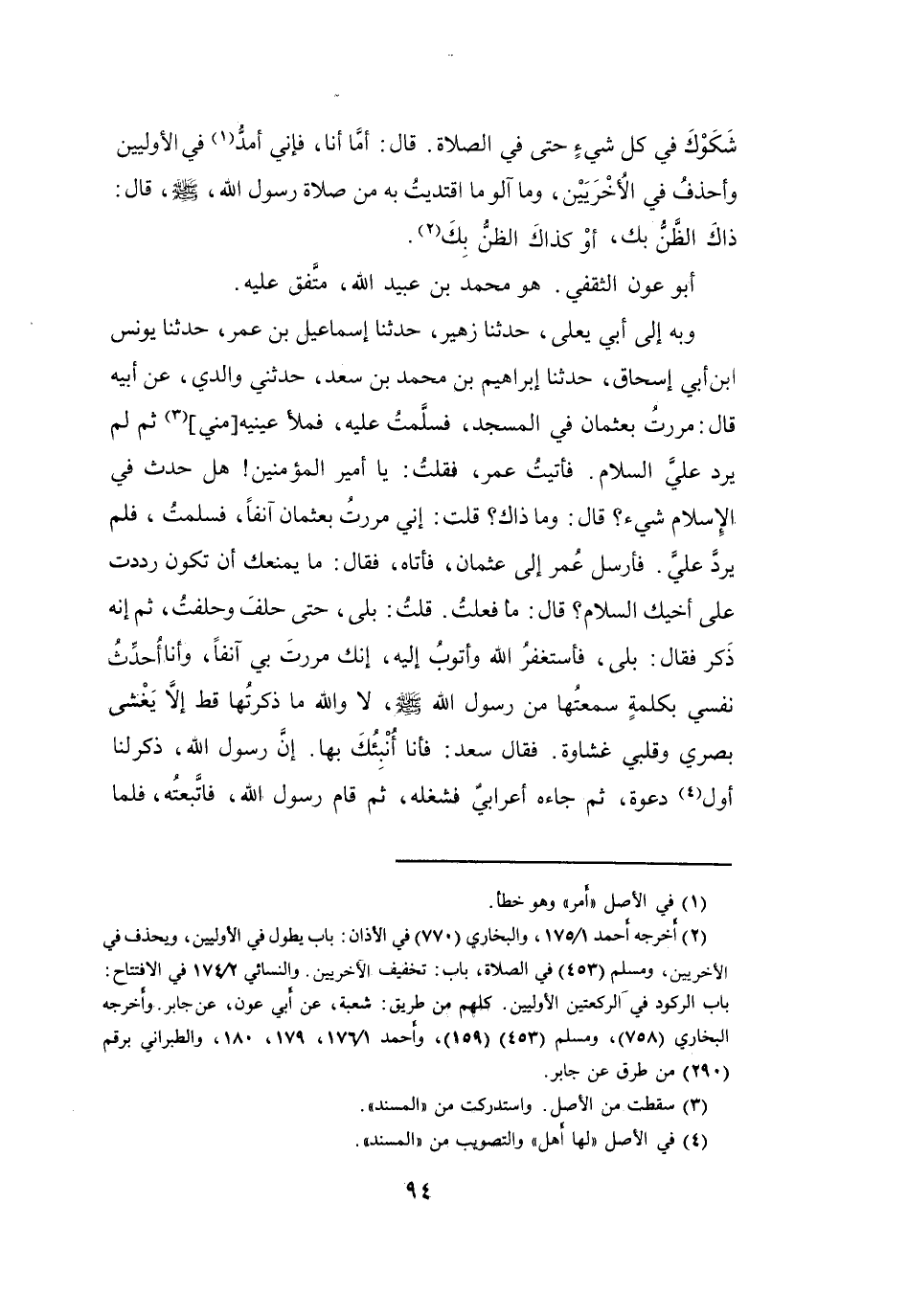 (2) أخرجه أحمد 1 / 175، والبخاري (770) في الاذان: باب يطول في الاوليين، ويحذف في الاخريين، ومسلم (453) في الصلاة، باب: تخفيف الاخريين.